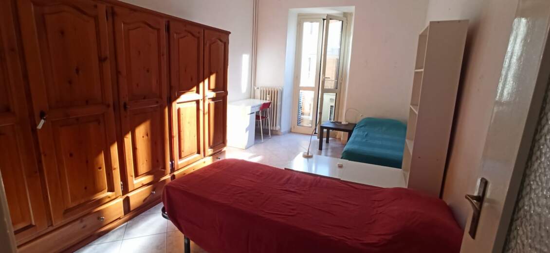 Dal 1°marzo, solo per due studenti universitari, bilocale arredato composto da: ingresso su zona living con cucina, camera con due letti, bagno e due balconi.