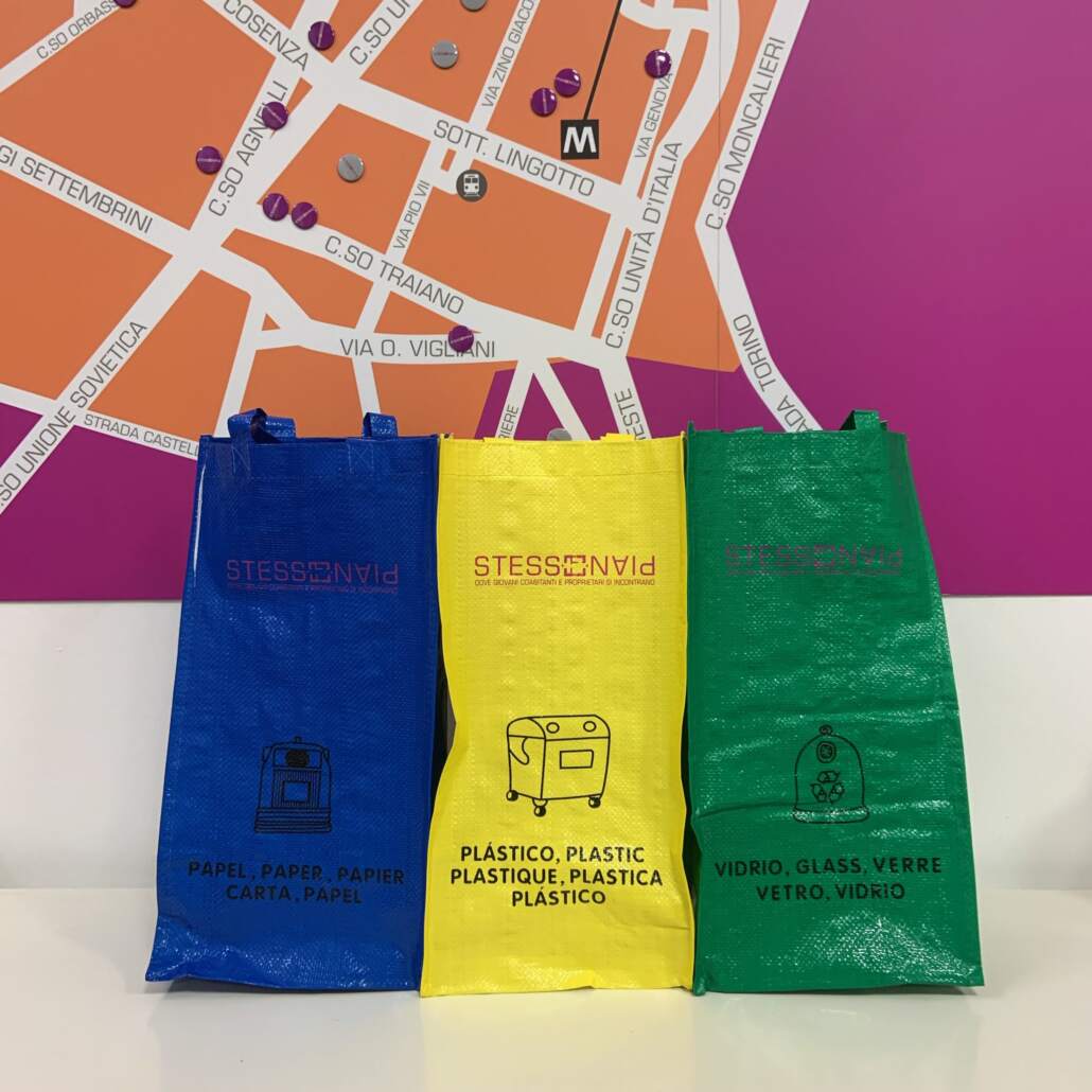 StessoPiano ha realizzato un kit per la raccolta differenziata destinato a tutti i gruppi di coabitanti che hanno trovato casa nell’ambito del progetto, per sensibilizzare alla corretta gestione dei propri rifiuti.